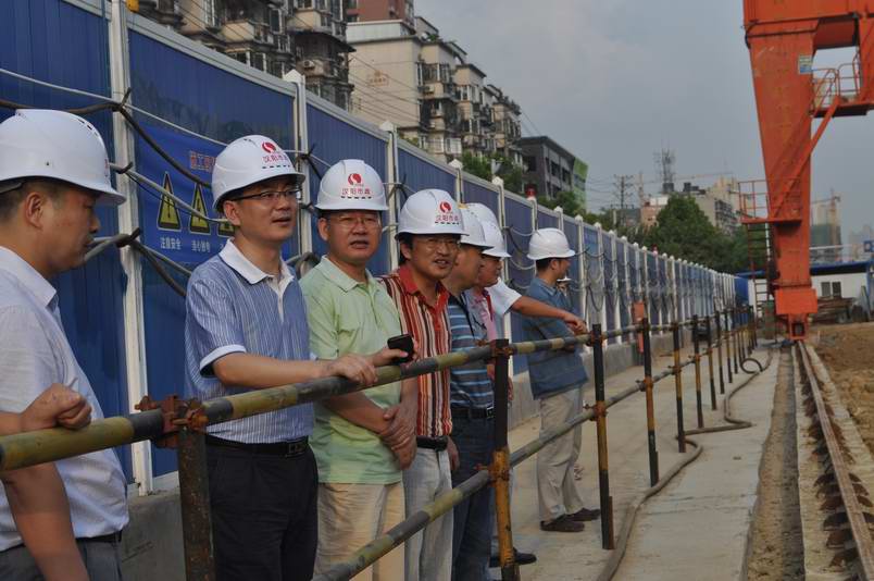 2012年8月20日下午,區人大副主任李福杰率各職能部門一行調研漢陽區城市建設重點項目情況,參觀考察了鐘鑫市政承建的玉龍路地鐵項目部。