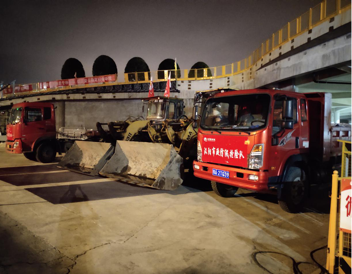 韓偉一行首先查看了長(zhǎng)江的汛情和月亮灣項(xiàng)目部的防汛準(zhǔn)備工作。月亮灣項(xiàng)目地處臨江區(qū)域,屬月亮灣險(xiǎn)灘,面臨著防汛搶險(xiǎn)的嚴(yán)峻考驗(yàn)。因此,在汛情前期,項(xiàng)目部就做好充分準(zhǔn)備,積極籌備鏟車(chē)2臺(tái),拖車(chē)1臺(tái),挖機(jī)2臺(tái)及10余類防汛器械,確保防汛物資充足;并確立了項(xiàng)目領(lǐng)導(dǎo)帶班值守巡查制度,組織25人成立應(yīng)急搶險(xiǎn)小組,24小時(shí)輪流駐守在防汛應(yīng)急值守點(diǎn)。同時(shí),項(xiàng)目部還暫停現(xiàn)場(chǎng)部分基坑開(kāi)挖和樁基施工工序,在保證不影響施工進(jìn)度的情況下,以萬(wàn)全的準(zhǔn)備應(yīng)對(duì)汛期的到來(lái)。韓偉檢查了一工區(qū)的防汛應(yīng)急值守點(diǎn),查看了倉(cāng)庫(kù)中的各類防汛物資及設(shè)備,了解了項(xiàng)目上的值班制度、值守人員巡視職責(zé)、搶險(xiǎn)應(yīng)急方案等。