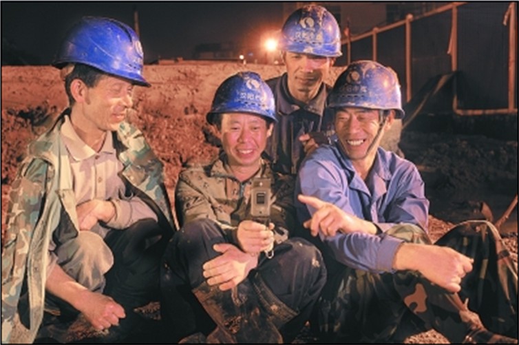 照片中有親情,有武漢大建設(shè),有消防官兵在廢墟的閃光,有笑臉,有武漢的樞紐火車(chē)軌道,有摩登城市大武漢全景,有黃昏的火燒云,而令我眼前一亮的是,一張最普通的照片:四個(gè)農(nóng)民工的自拍照,熟悉的工地,樸素的笑臉,頭上的安全帽印著“漢陽(yáng)市政”四個(gè)字及l(fā)ogo。