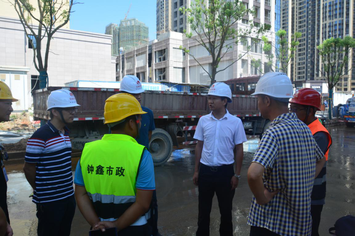 ? ? 高溫慰問第一站來到了軍運(yùn)會(huì)(漢欣苑)立面整治項(xiàng)目,曹元鑫充分肯定了一線作業(yè)人員不畏高溫,堅(jiān)守崗位的精神,并代表公司向他們表達(dá)了感謝。隨后驅(qū)車前往馮家畈、鸚鵡大道、烽勝路以及梨園廣場(chǎng)項(xiàng)目,在烈日當(dāng)頭的悶熱天氣下,曹元鑫詳細(xì)詢問了一線施工人員的作業(yè)情況,并叮囑項(xiàng)目部一定要做好防暑降溫工作,在持續(xù)高溫情況下,要首先確保一線作業(yè)人員的健康安全,做好安全文明施工,隨后鼓勵(lì)大家要克服困難,保證項(xiàng)目的進(jìn)度和安全質(zhì)量。
