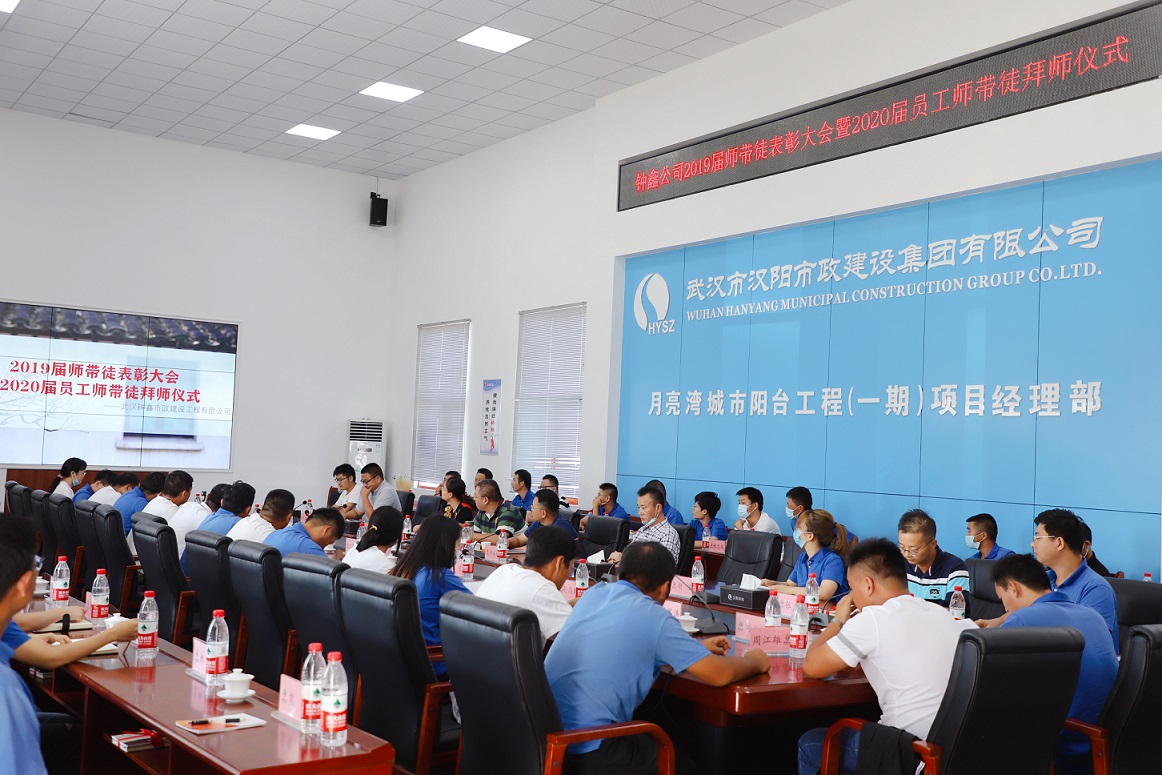凡學(xué)百藝,莫不有師,以師帶徒,薪火相傳。2020年8月28日,漢陽(yáng)市政鐘鑫公司2019屆師帶徒表彰大會(huì)暨2020屆員工師帶徒拜師儀式在月亮灣城市陽(yáng)臺(tái)項(xiàng)目部盛大舉辦,鐘鑫公司黨支部書記、董事長(zhǎng)陳俊俊,黨支部副書記、總經(jīng)理盧永紅等黨支部領(lǐng)導(dǎo),以及54名新老員工參加了本次大會(huì)。