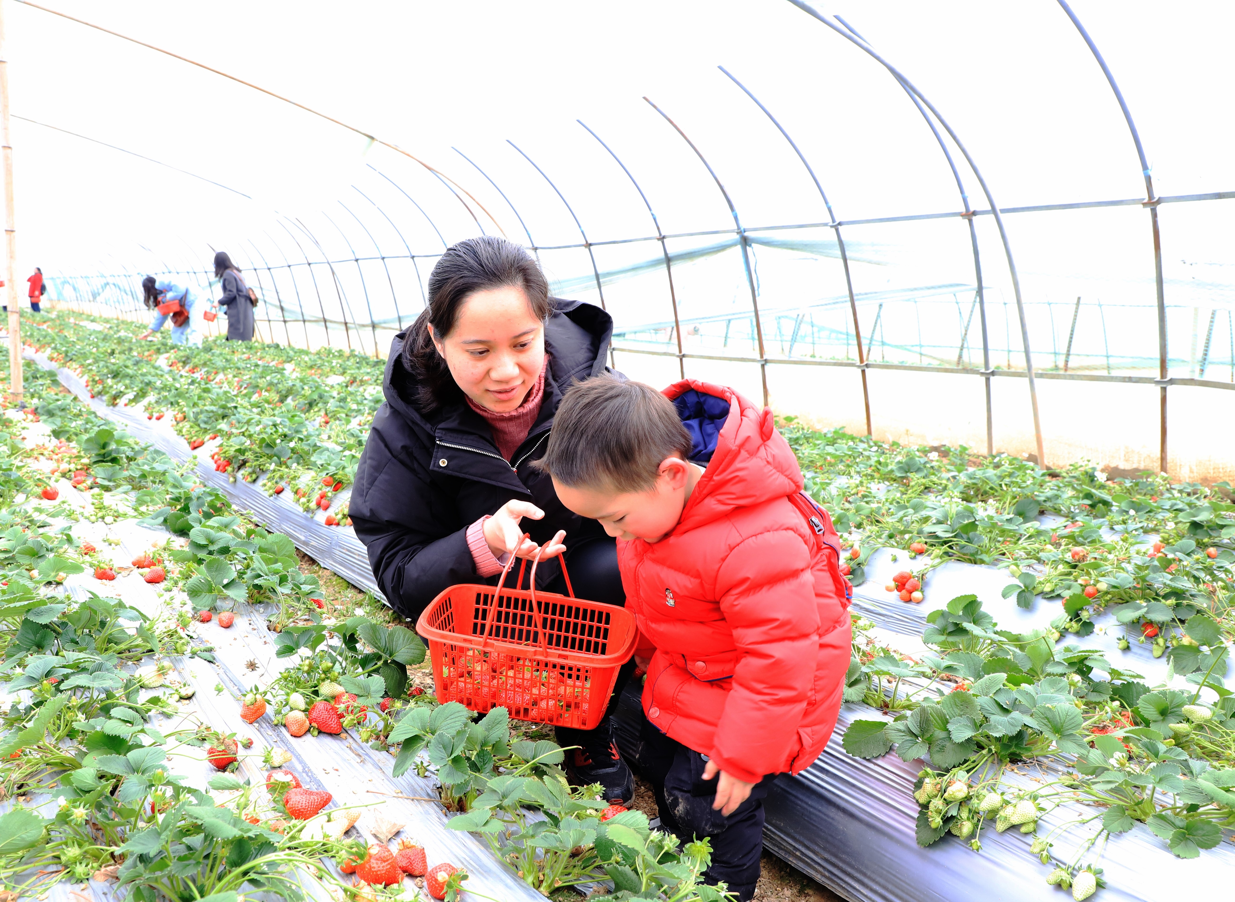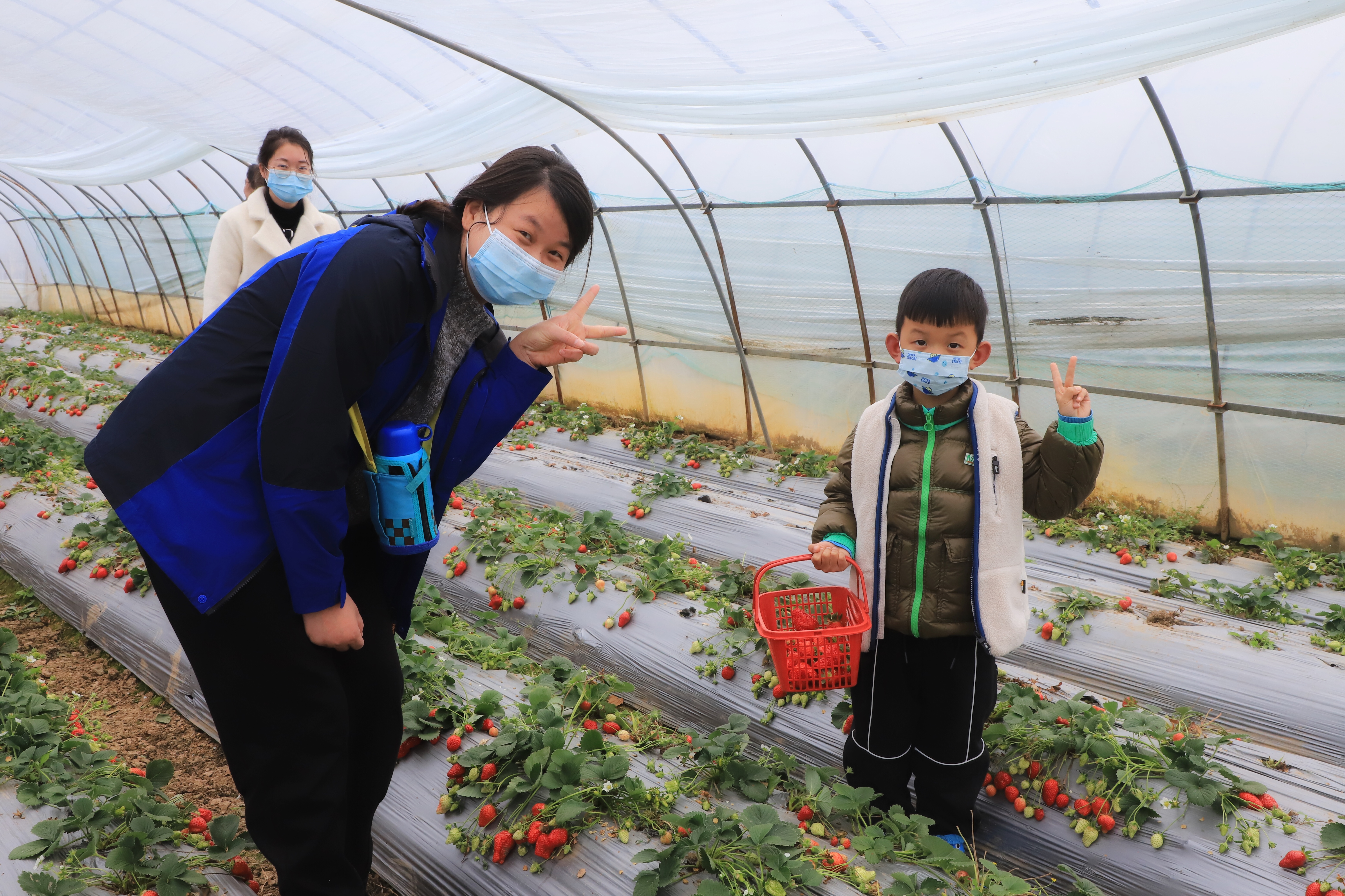 觀賞完油菜花后,大家又一起去農(nóng)莊體驗(yàn)采摘草莓的樂(lè)趣,品嘗草莓的甜美清香,鱗次櫛比的大棚里傳來(lái)大人小孩此起彼伏的歡笑聲,盡享快樂(lè)親子時(shí)光。