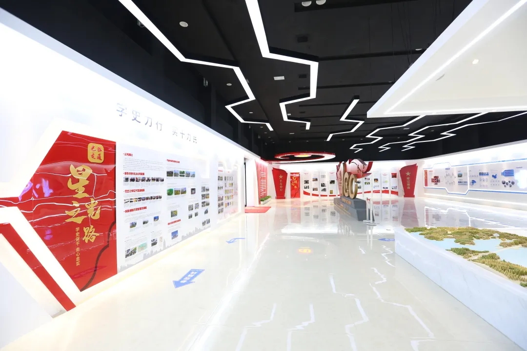 高新三路項目黨建展廳是漢陽市政鐘鑫公司按照“黨建引領,推動項目高質量發展”的理念,結合建黨100周年黨史學習主題,傾心打造的兼具黨史教育特征與國有企業特色的學習教育基地。從光耀之路、榮光之路、星光之路三個篇章展示了英雄武漢的百年榮光、美麗光谷的崢嶸歲月和光谷交通、漢陽市政的發展歷程,并集中展示了高新三路項目的建設理念及發展遠景。自2021年9月建成以來,黨建展廳已成為各單位開展黨史學習活動、交流項目建設理念的重要載體。