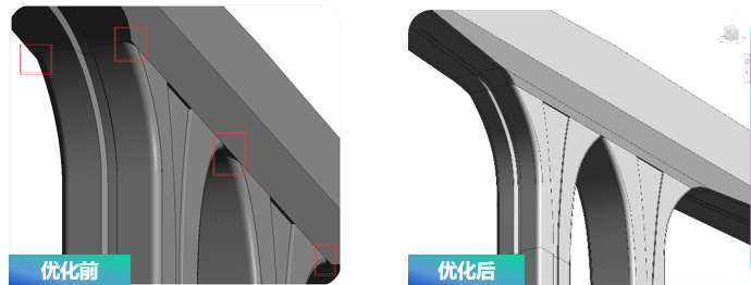 高新三路BIM技術(shù)團(tuán)隊(duì)對橋梁下部共22種類型的墩柱蓋梁設(shè)計圖以可視化的方式校核橋下凈空、管線碰撞、管線與結(jié)構(gòu)碰撞、管線排布等設(shè)計問題,確保初步設(shè)計方案的合理性。墩柱蓋梁原設(shè)計采用花瓶墩,橋梁排水管沿蓋梁及墩柱側(cè)面中心溜槽埋設(shè)。BIM建模發(fā)現(xiàn),墩柱及蓋梁銜接處線型過渡不順暢,進(jìn)行設(shè)計優(yōu)化。